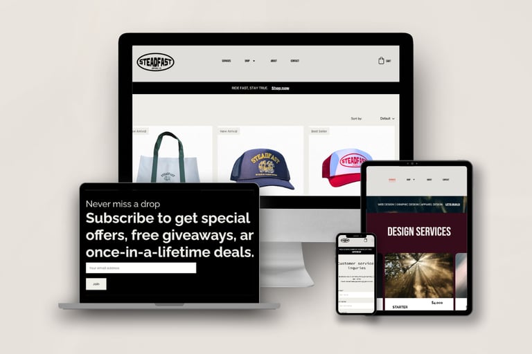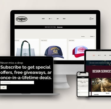 We build strategic, clean visual design for brands that want to look established and sell with confidence- from website design to branded merch systems built for growth.